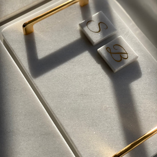 Marmortablett/Verlobungstablett mit Ringuntersetzer