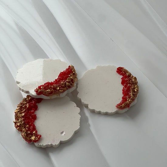 Resin Gastgeschenke mit rot/goldenem Steinrand