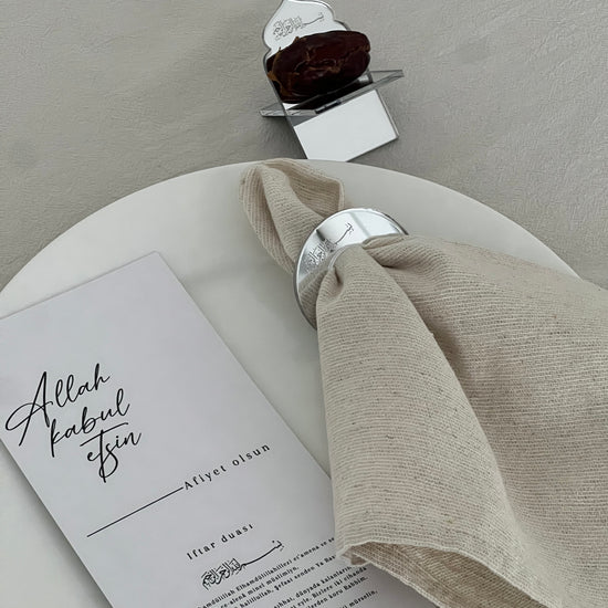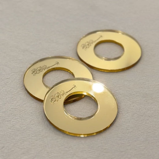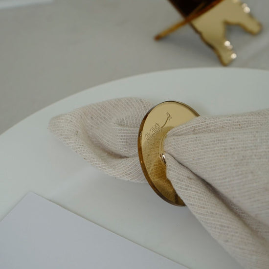 Serviettenringe in gold mit dem Schriftzug "Bismillahirrahmanirrahim" auf arabisch.