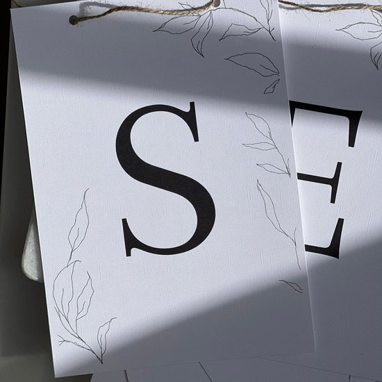 Girlanden bestehend aus: Sevgi, Saygı, Huzur, Mr&Mrs, Nachname