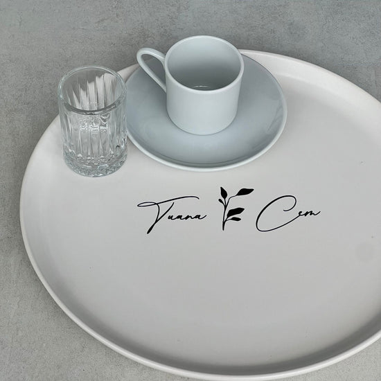 Tablett bestehend aus Keramik im ästhetischen und zeitlosen Stil.